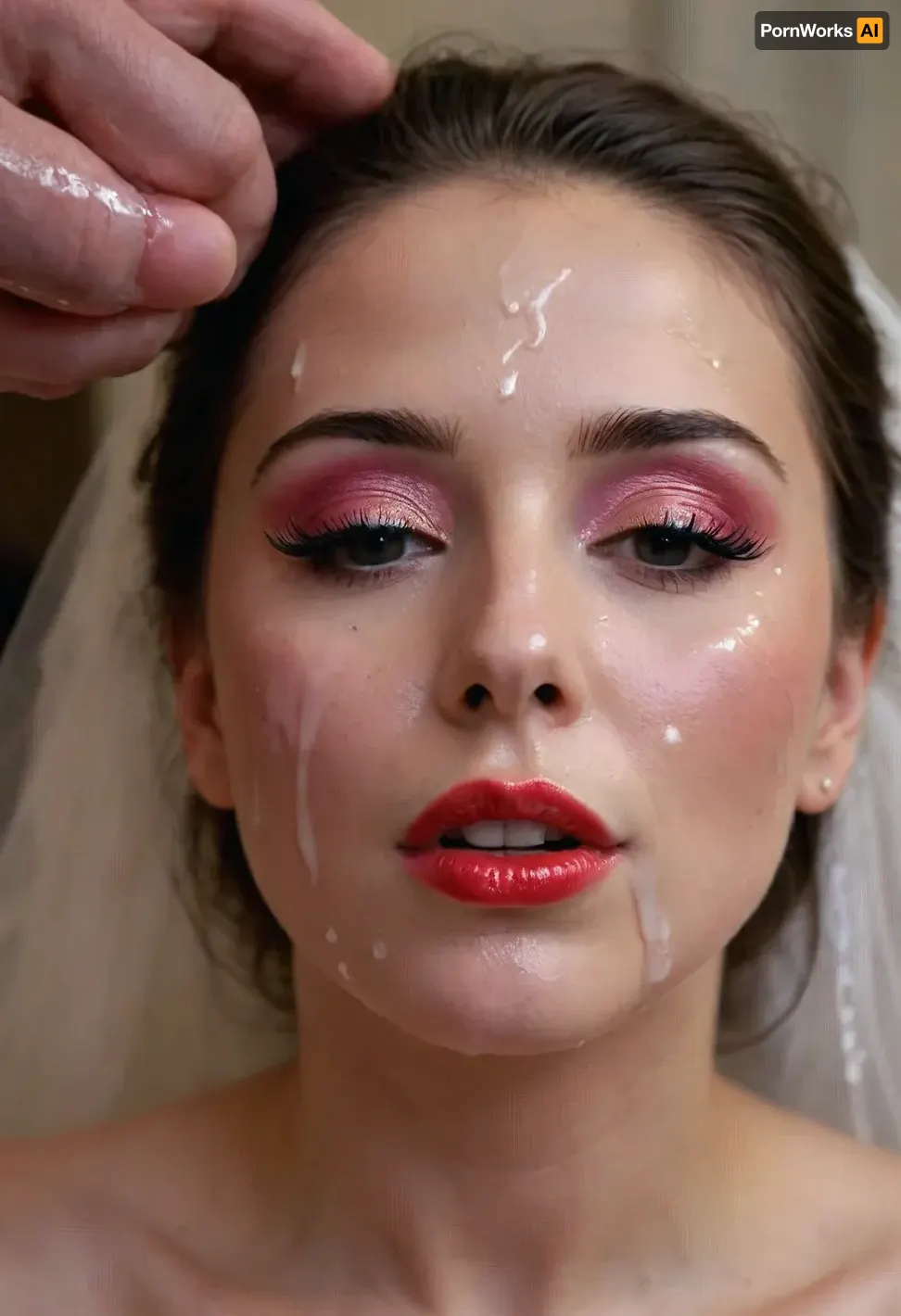 bukkake, cumshot, facial portrait picture of the Bride face in cum facial, with heavy colorful makeup and a lot of makeup, a lot of Cum on her face, cum on her long black eyelashes, Cum on her eyelids, Cum on her cheek skin, her face wet with Cum, Cum on her red lips. cum on her wedding tail., ((lot of cum on face)), woman, cum, on, face, <lora:JustCum:.8>