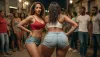 realistic, cinematic, outdoor environment, night light, funk dance in a favela, women dancing funk in tight, sexy short clothes, male criminals watching back, sound cars, very large speakers, huge, ass, breasts, big, hips, narrow, waist, 4ltb4b3s, woman, <lora:BodyLicious:.4>, <lora:4ltb4b3s-woman_128_64_LR1_batch1:.8>