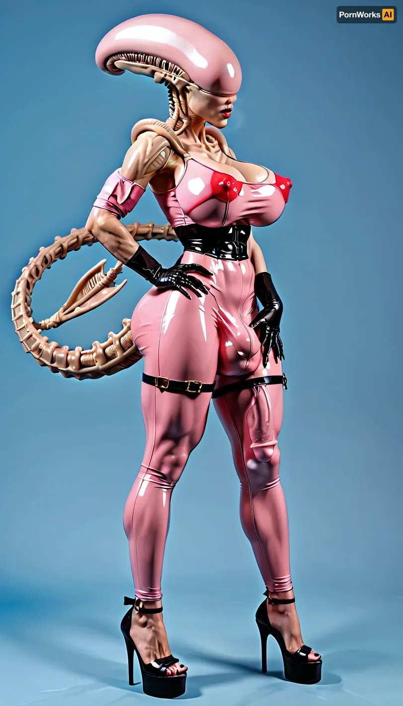 1 person only, (white Xeno, xenomorph), latex, full body view, eye contact, pink latex body mesh, 90% pink translucent body mesh, big breasts, (pants bulge, bulge, massive penis bulge, massive testicles bulge, popping through, massive bulge), ((huge erect penis bulge in her latex body mesh, penis bulge)), muscular quads, muscular calfs, veiny boobs, legs spread, bubble butt, (fingering a femboy yiff), red nipples, black hands, black high heels, black see-through thigh high sock, butt lift, putt plug, veiny body, crouched, orgasm face, dribbling semen, gold sholder pads, thigh straps, semen bulge, pale blue background, semen everywhere, <lora:bulgev1-beta:2>, female, white xenomorph, tail, xenowaifu, xenofuta, xenofemboy, <lora:female_xenomorph_sdxl_V2:.8> 1 person only, (white Xeno, xenomorph), latex, full body view, eye contact, pink latex body mesh, 90% pink translucent body mesh, big breasts, (pants bulge, bulge, massive penis bulge, massive testicles bulge, popping through, massive bulge), ((huge erect penis bulge in her latex body mesh, penis bulge)), muscular quads, muscular calfs, veiny boobs, legs spread, bubble butt, (fingering a femboy yiff), red nipples, black hands, black high heels, black see-through thigh high sock, butt lift, putt plug, veiny body, crouched, orgasm face, dribbling semen, gold sholder pads, thigh straps, semen bulge, pale blue background, semen everywhere, <lora:bulgev1-beta:2>, female, white xenomorph, tail, xenowaifu, xenofuta, xenofemboy, <lora:female_xenomorph_sdxl_V2:.8>